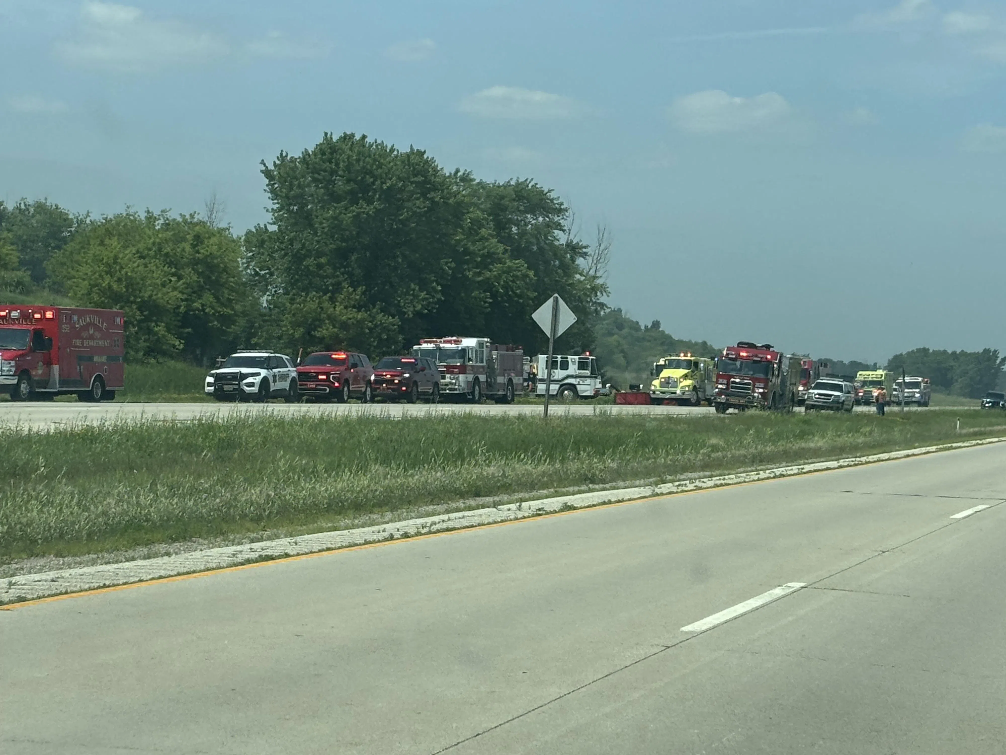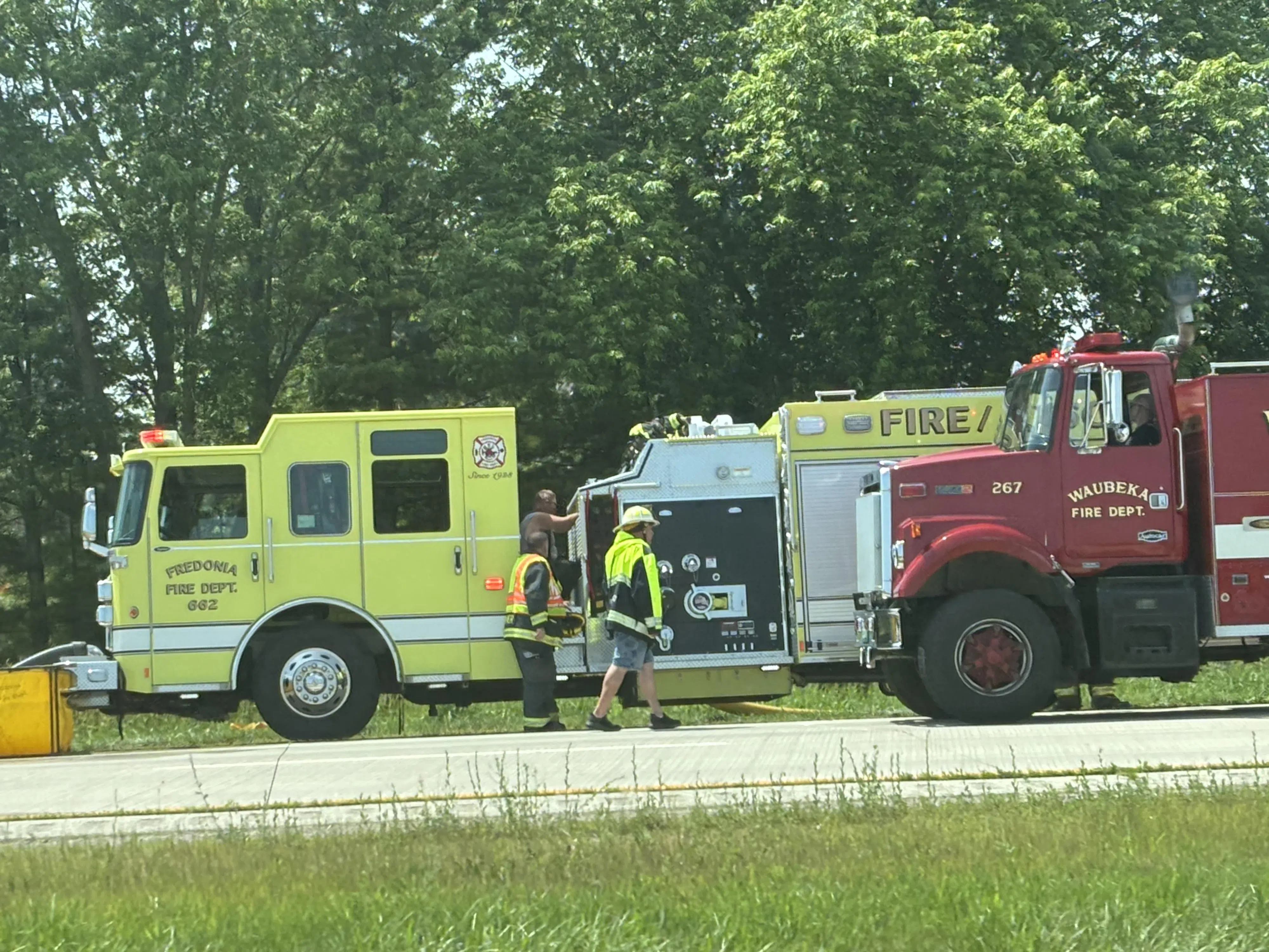 Emergency Crews Line Highway 57 in Response to a Barn Fire Near Fredonia Tuesday Afternoon. Photo by Jon DeMaster